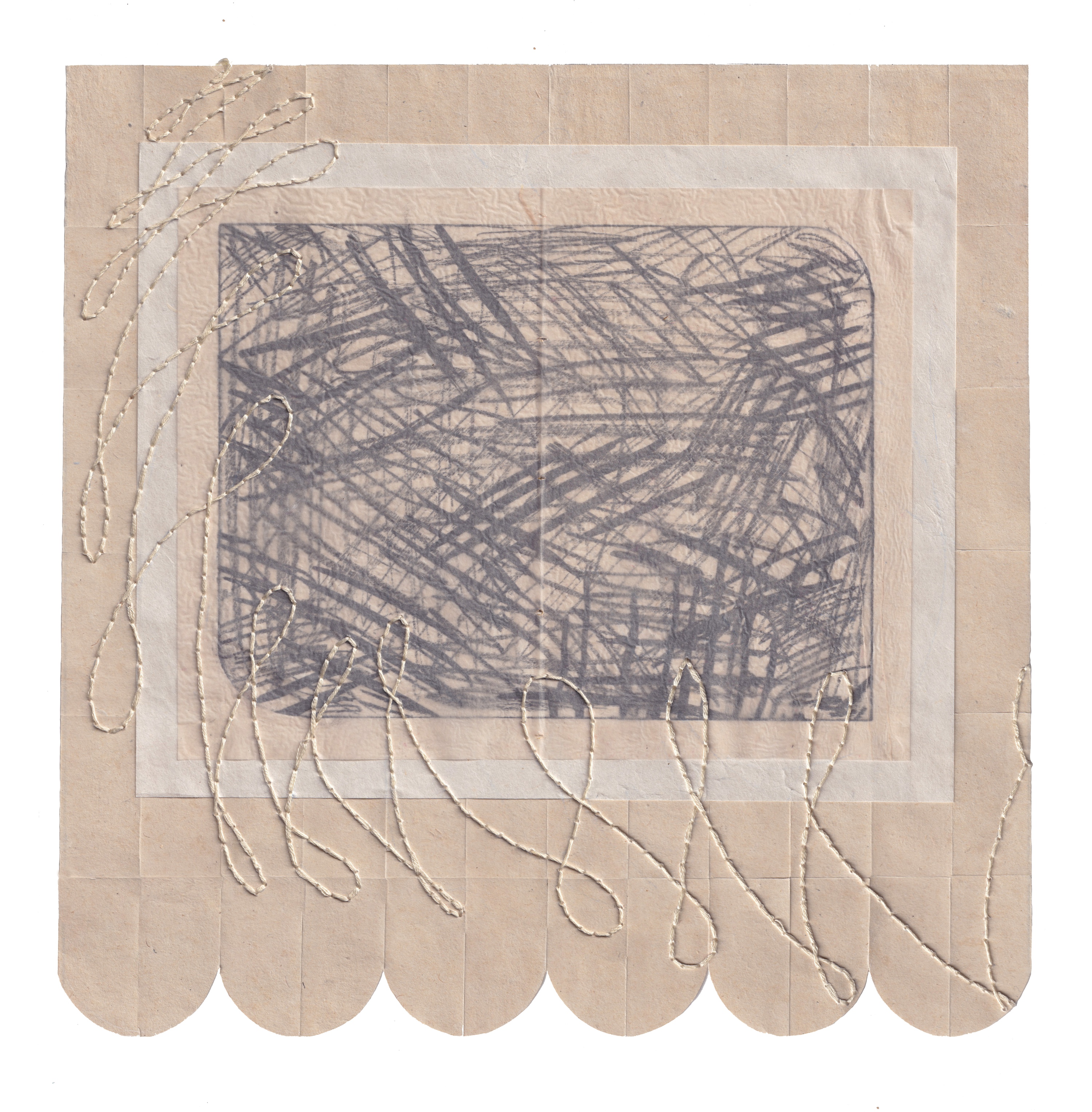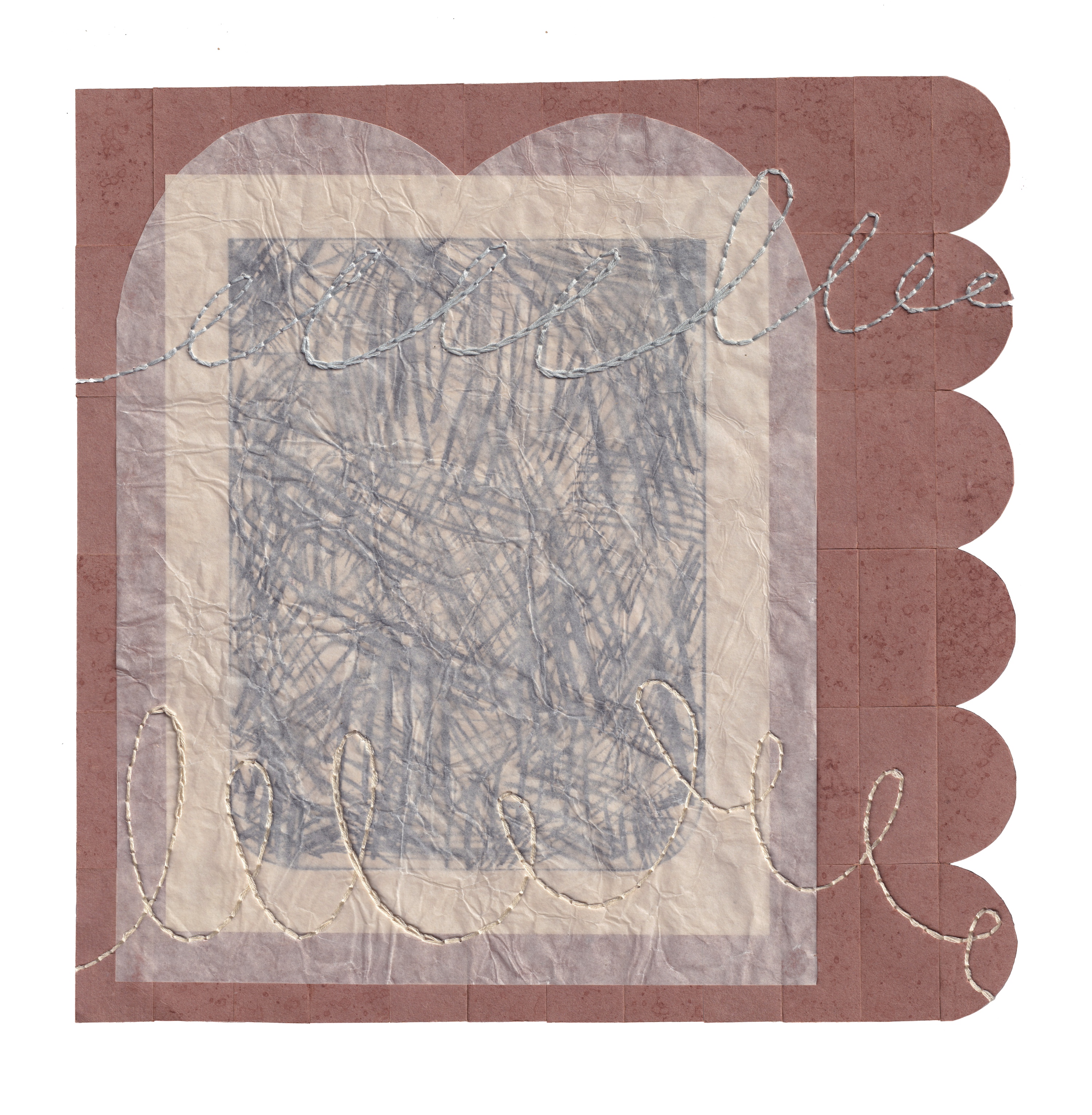 a collection lithino (lithography on lino) on handmade paper and embroidered prints made during my residency at Ochre Print Studio